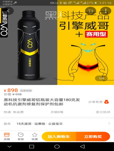 同市場上各種發(fā)動機(jī)保護(hù)劑的主要區(qū)別:優(yōu)勢在于它以液態(tài)離子形式溶于各種發(fā)動機(jī)機(jī)油中、國際API配方產(chǎn)品、節(jié)油效果顯著、動力增強(qiáng)明顯(市場產(chǎn)品:固體納米產(chǎn)品油溶性不好、不能進(jìn)入API配方標(biāo)準(zhǔn),性能不突出、副作用大)。
